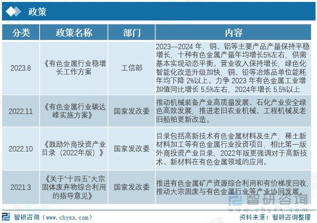 相關報告:智研咨詢發(fā)布的《2023-2029年中國有色金屬行業(yè)市場發(fā)展現(xiàn)狀及競爭格局預測報告》