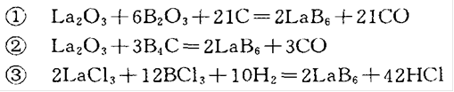 適用于CVD法生產(chǎn)LaB6的化學(xué)反應(yīng)式有:
