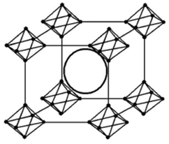 2)硼框架是八面體,立方體的每一個(gè)頂點(diǎn)上都有一個(gè)由硼原子框架形成的八面體,八面體又以頂點(diǎn)互相連接。