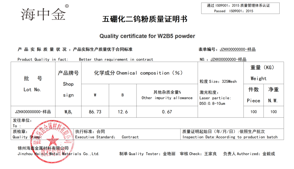 產(chǎn)品名稱:五硼化二鎢(B5W2)