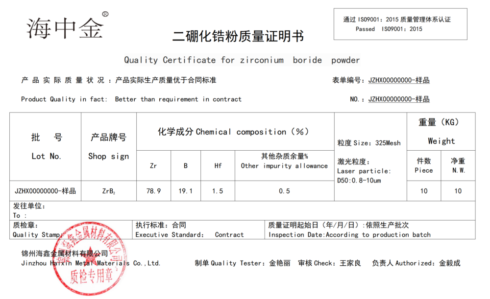 產(chǎn)品名稱:二硼化鋯(ZrB2)