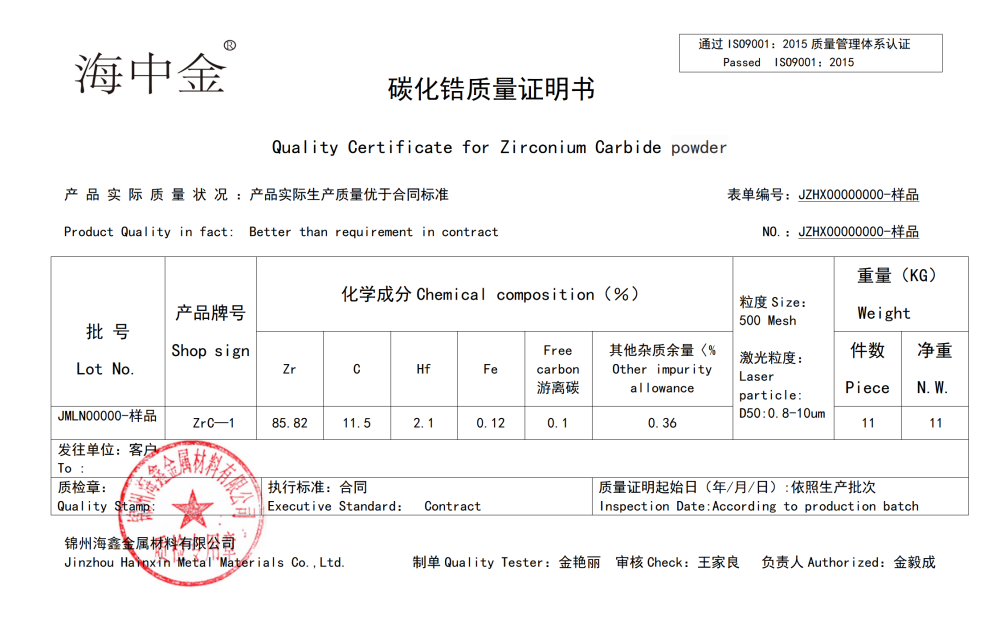 產(chǎn)品名稱(chēng):碳化鋯(ZrC)