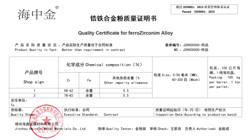 產(chǎn)品名稱:鋯鐵(ZrFe)
