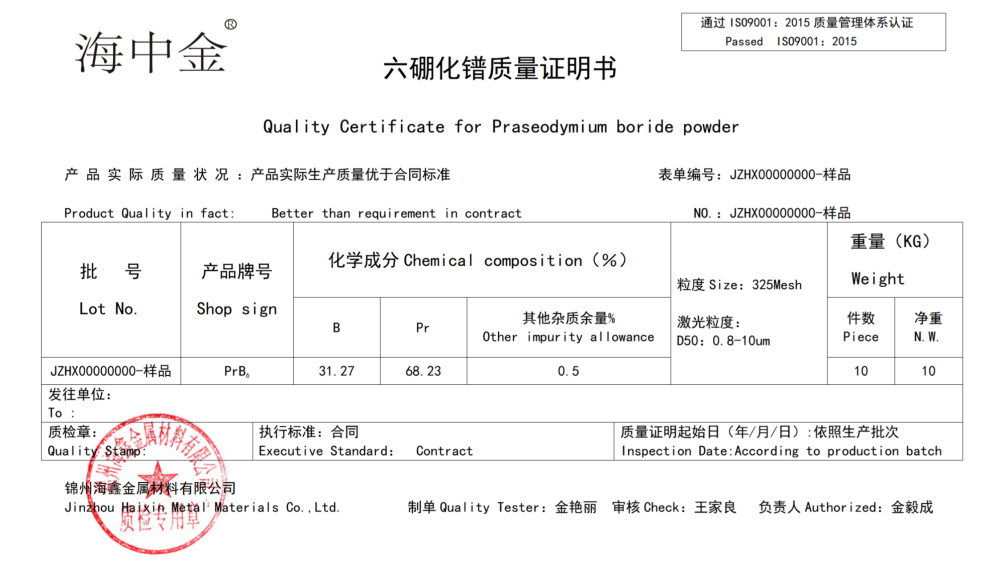 2.硼化鐠可用于制備陶瓷、涂層和磁性材料等方面。