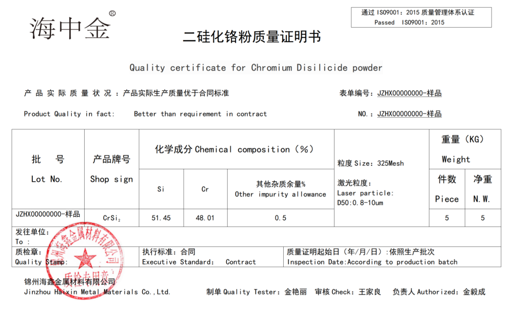 產(chǎn)品名稱:二硅化鉻(CrSi2)