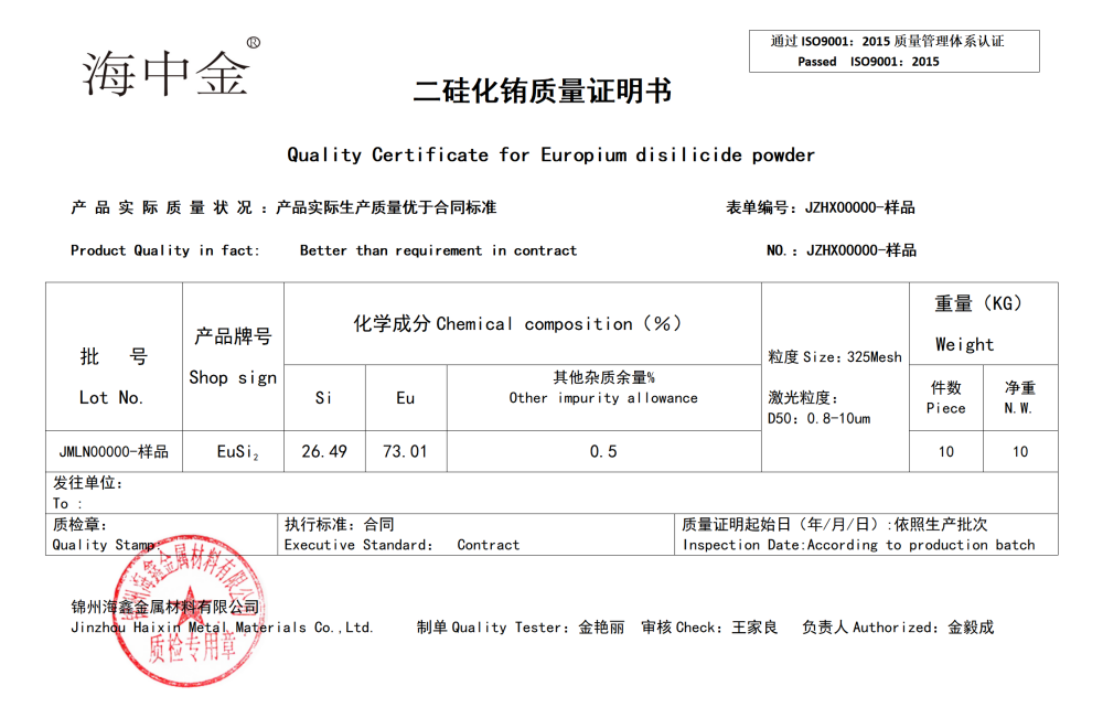 產品名稱:二硅化銪(EuSi2)