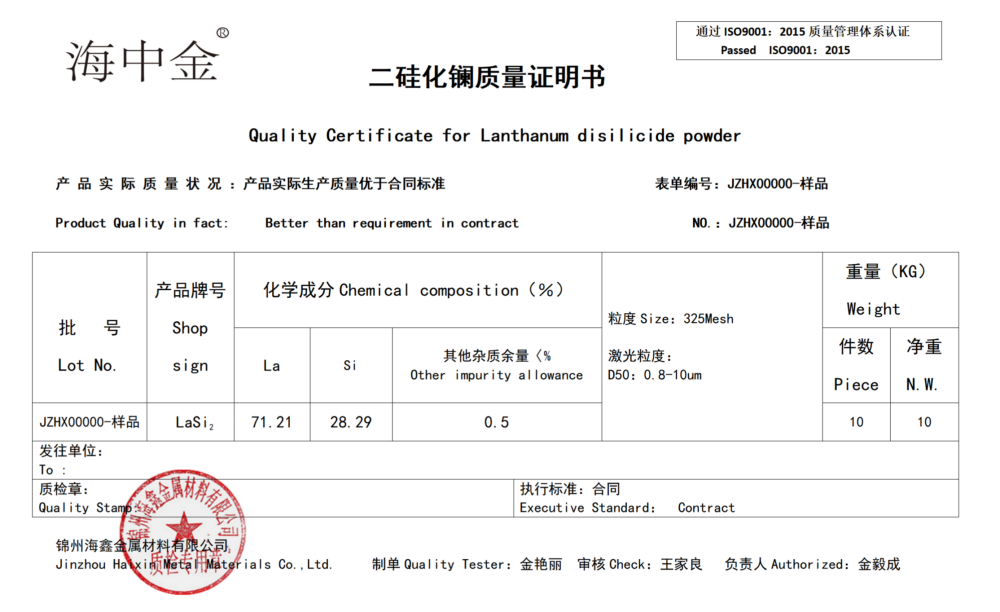 產(chǎn)品名稱:二硅化鑭(LaSi2)